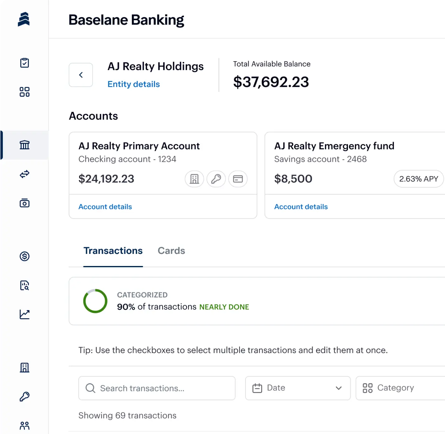 Create unlimited accounts for each property, security deposits, rehab savings and more. All while earning up to [v="apyvalue"] APY² on deposits. FDIC insurance up to [v="fdic_short"]¹ on funds deposited via Thread Bank; Member FDIC. Certain conditions must be satisfied for pass-through deposit insurance coverage to apply.