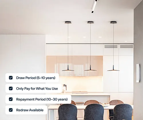 A Home Equity Line of Credit (HELOC) is a revolving credit line secured by your home’s value. It works a bit like a credit card: