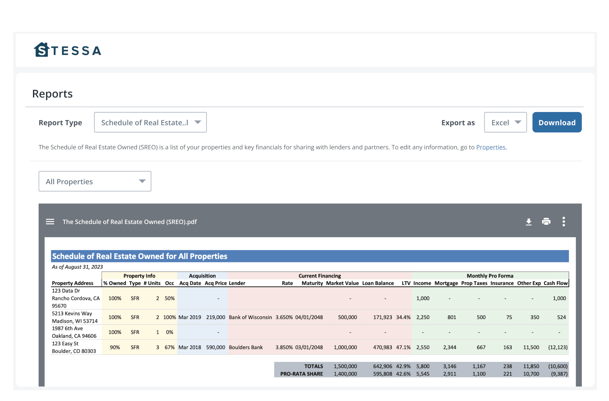 - Document and lease tracking for each property.