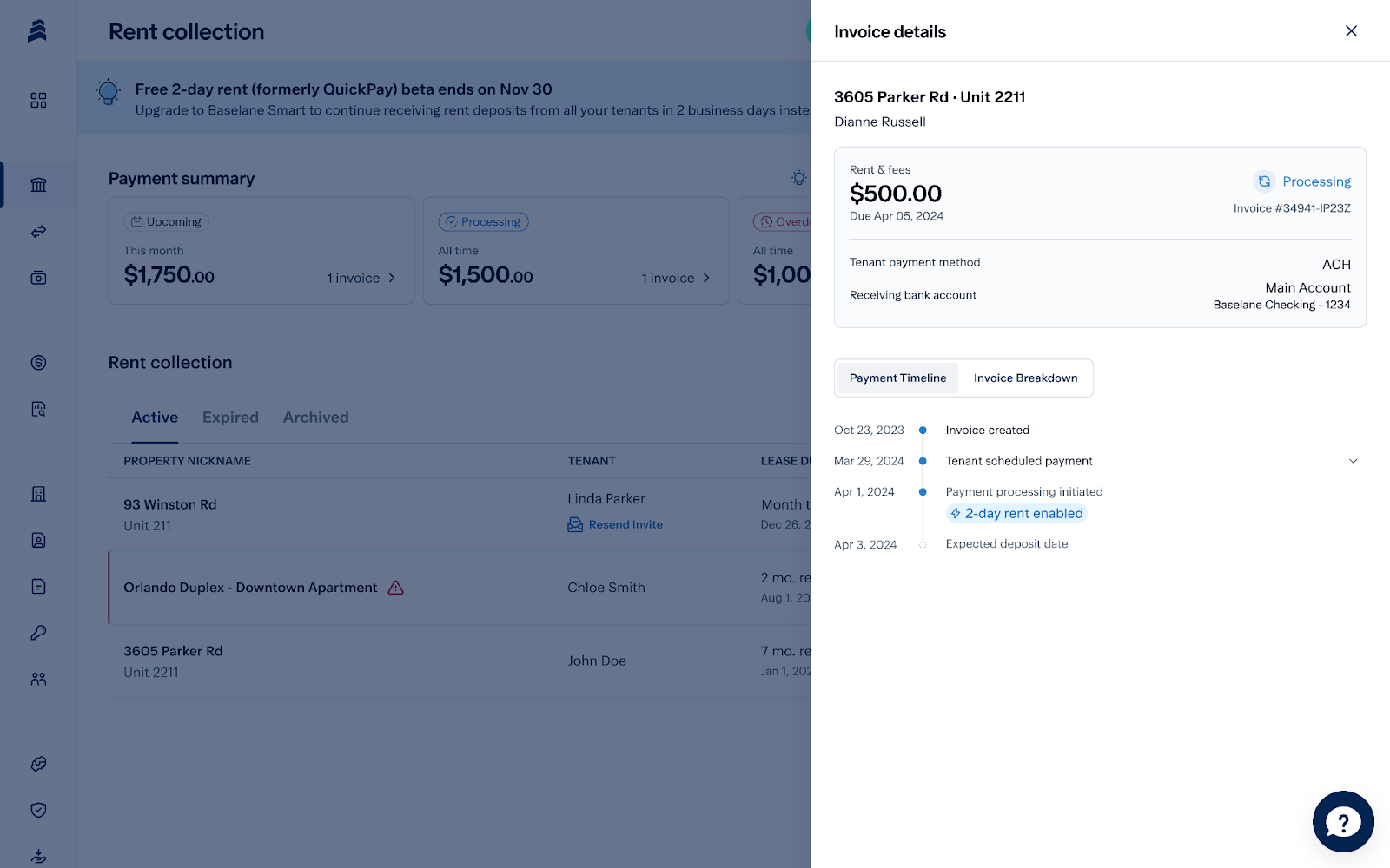 When tenants pay online, Baselane will log those payments against the right tenant and property without any extra work from you.