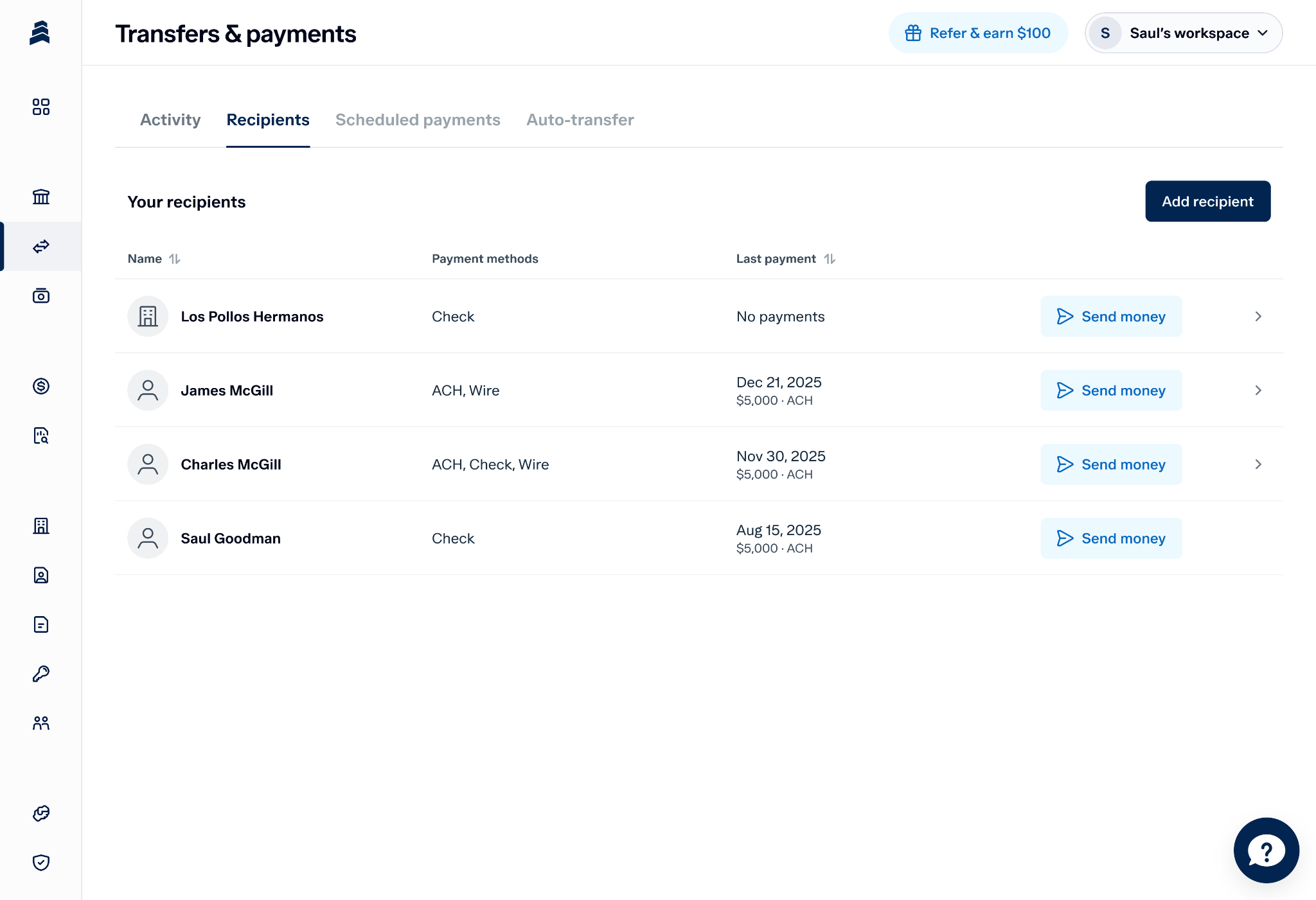 - Click "Add Recipient": Find it under Transfers & Payments.
