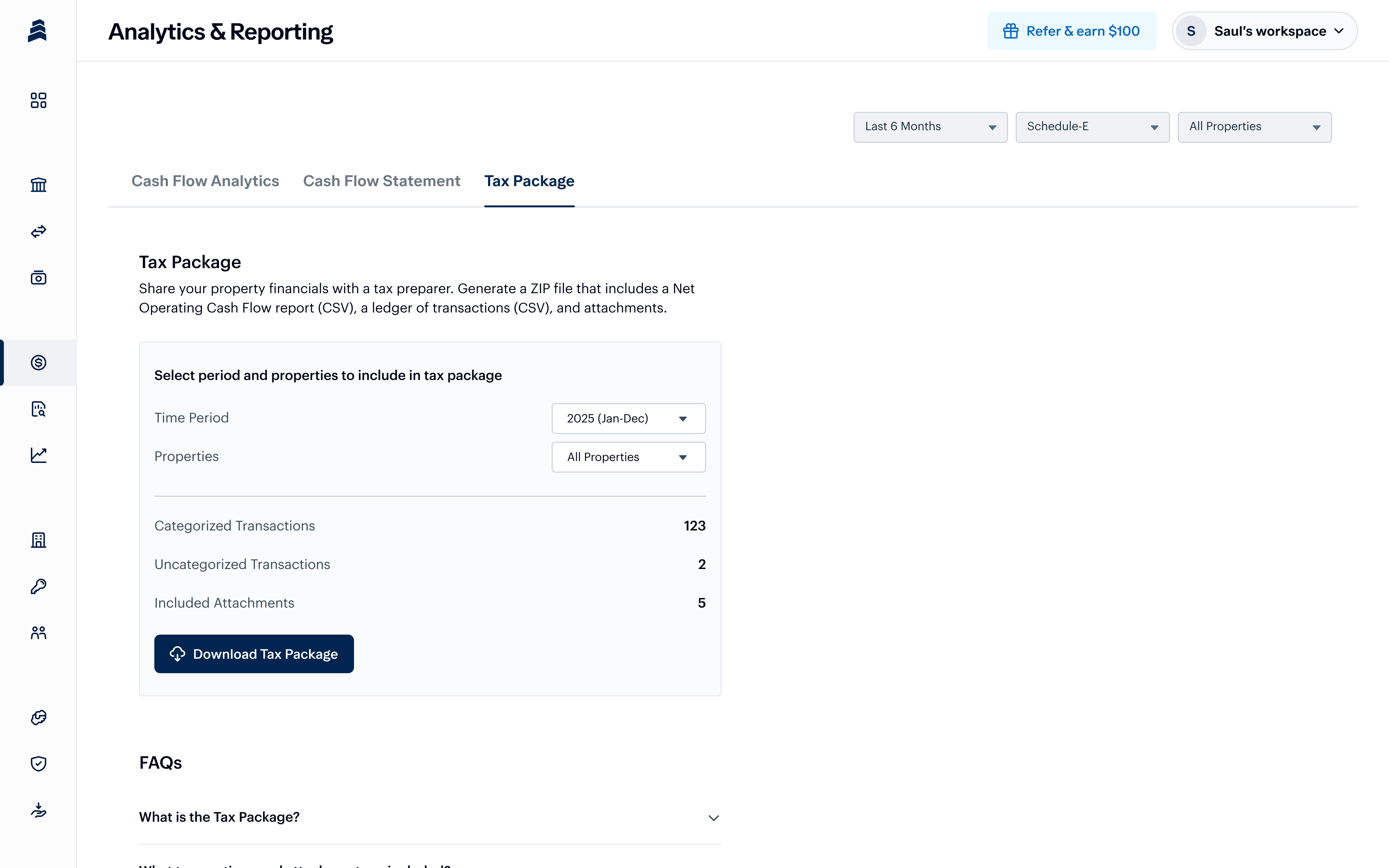 - Click "Tax Package": Find it under Analytics and Reporting.